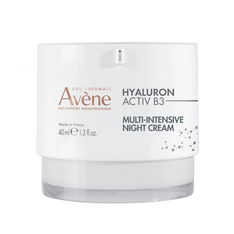 Avene dermatological laboratories have created Hyaluron Activ B3 night cream containing retinal, pure hyaluronic acid, Haritaki extract and niacinamide to act on the cause of ageing *and the signs of skin ageing. When you wake up, skin looks smoother. After 2 weeks, it feels firmer and wrinkles appear reduced**. A real protective night care, its delicately scented texture brings comfort to the skin, without leaving an oily finish. Its slightly orange colour is linked to the presence of retinal.