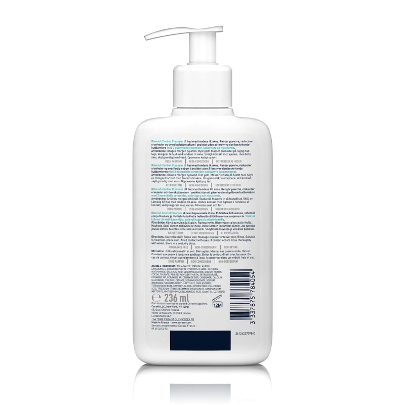 Suitable for blemish-prone skin. The daily cleanser contains 3 Essential Ceramides, Salicylic Acid and Niacinamide, and gently exfoliates dead skin cells that can clog pores and contribute to blemishes. Formulated with an oil-absorbing technology using Hectorite Clay, CeraVe Blemish Control Cleanser helps remove dirt and excess oil, to minimise shine.