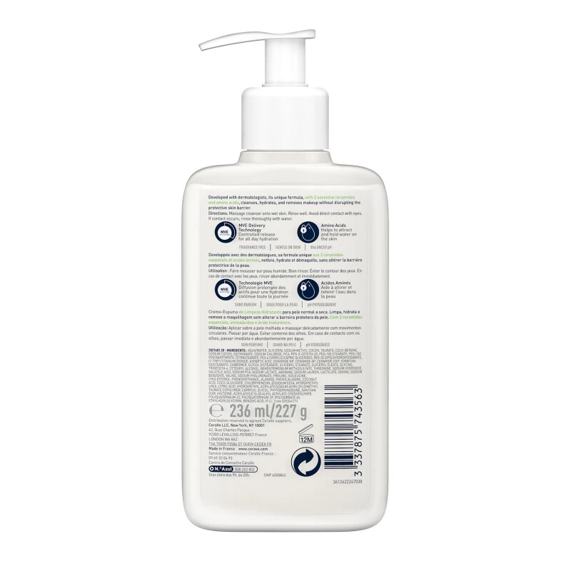Key Features of CeraVe Hydrating Cream to Foam Cleanser