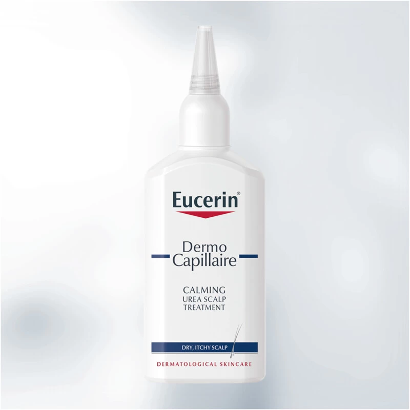 ‘Eucerin DermoCapillaire Calming Urea Scalp Treatment is a leave-in treatment that provides intensive moisturising to soothe and calm itchiness and irritation caused by dry and itchy scalp.Eucerin DermoCapillaire scalp treatment contains key ingredients including Urea and Lactate, that help to improve the scalps ability to bind in moisture, and is specifically designed for people with a dry and itchy scalp. The leave-in treatment formula delivers reduced itchiness and increased moisture from the first use.This scalp treatment is suitable for users with Atopic Dermatitis or Psoriasis and is free from colourants, parabens, silicones, alkali, alcohol and fragrances.