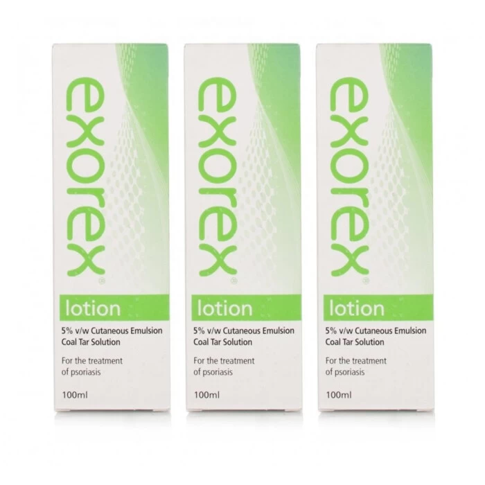 Exorex Lotion 5% Triple Pack contains 5% prepared coal tar in the bast of esterified fatty acids. The ingredients used allows you to notice an improvement to your skin within a few weeks, however it may also take longer for the improvement to occur. This prodcut is used for the treatment of psoriasis whilst other Exorex prodcuts are complementary, designed to assist in the management of psoriasis.