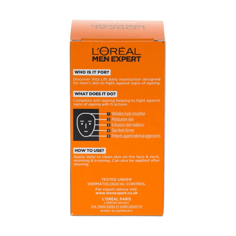 L’Oreal Paris Men Expert Vita Lift 5 Anti Ageing Daily Moisturiser is a daily intensive moisturiser to help make your skin feel smoother, firmer, and revitalised. With active ingredients, it works to provide intense moisturization to your skin for achieving healthier skin.