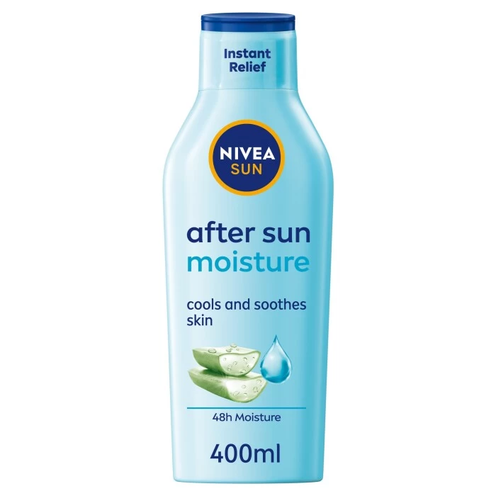NIVEA SUN After Sun Moisturising Lotion deeply moisturises your skin for up to 48 hours, providing it with instant relief and a unique cooling effect. Enriched with Aloe Vera and Hyaluron, key ingredients that work to maintain and support your skins elasticity whilst also helping to leave your skin feeling silky soothe. NIVEA SUN After Sun Moisturising Lotion is a non-sticky and non-greasy after sun that gets to work helping to stop peeling and flaking and is the perfect thing to use after a day out in the sun.