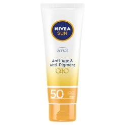 NIVEA SUN UV Face Q10 Anti-Age Sun Cream SPF 50 will keep your skin protected against UVA / UVB induced skin damage and high energy visible Light effects such as premature skin aging whilst feeling light and silky soft.