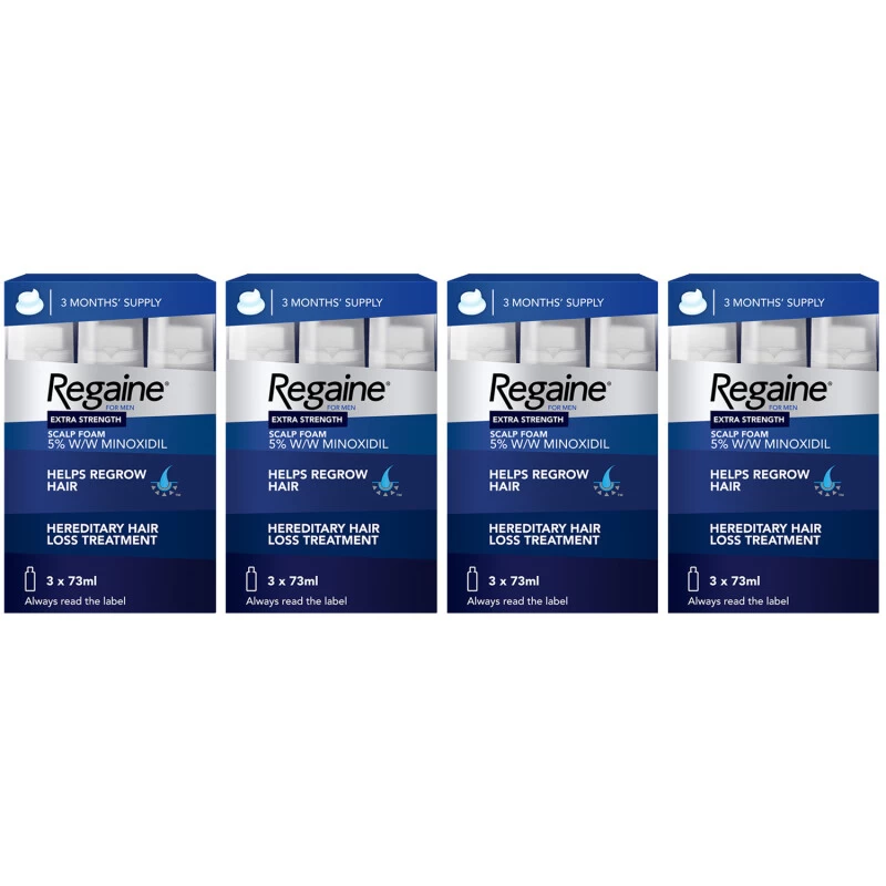 Regaine Foam For Men is a multipack of hair stimulating foam. These can be used right at the site of hair loss to prevent further loss and encourage re-growth.