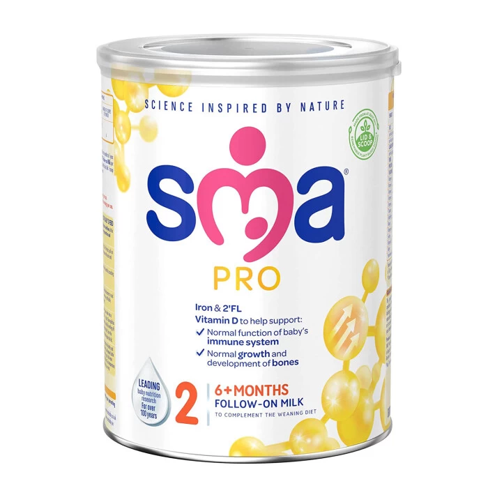 SMA PRO Follow On Milk is enriched with essential nutrients to support 3 main areas at this stage in your baby’s development: development, immunity and growth. Iron supports normal cognitive development, Vitamins A, C & D support normal function of the immune system, Vitamin D and Calcium support normal growth and development of bones, and Omega 3 & 6 helps to support normal growth.