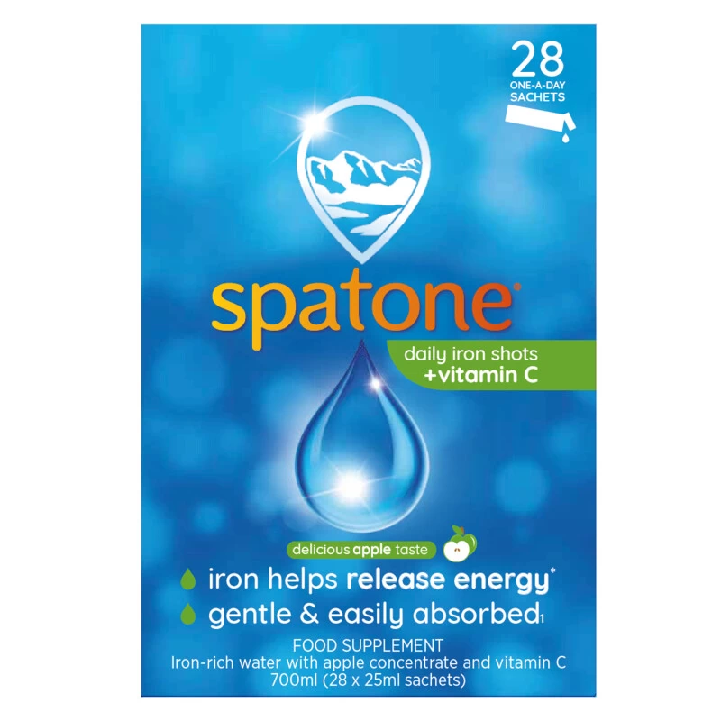 Spatone Natural Liquid Iron Supplement Apple with Vitamin C combines 100% natural iron rich water from Snowdonia, North Wales with a delicious apple taste and added Vitamin C. The Iron rich water is packed into a single serve sachet that can be easily popped into your pocket or handbag. This makes Spatone a convenient Iron supplement, ideal for use on the go to contribute to normal energy-yielding metabolism and the normal function of the immune system.