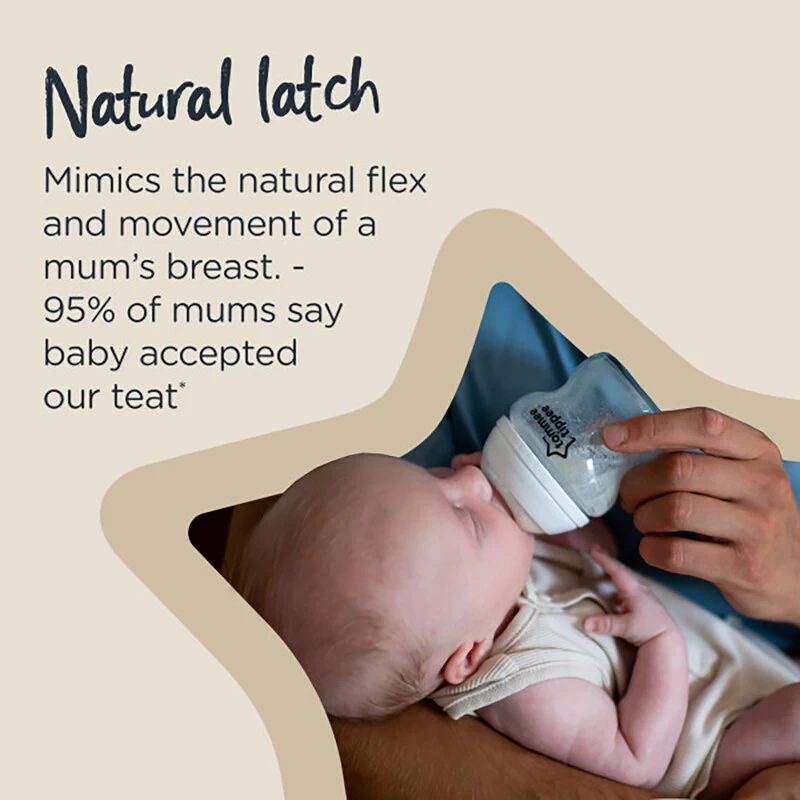 Loved by mums and babies, our easy latch-on, breast-like teat feels closer to the skin and mimics the natural flex and movement of a mum’s breast for a comfortable feed. 95% of mums reported that their baby accepted the super-soft silicone teat with a skin-like feel and would recommend to others*.