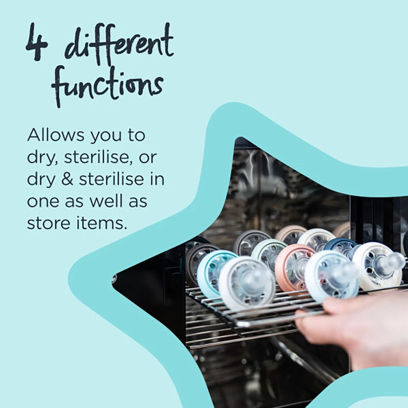 - Can sterilise and dry up to 6 bottles in 60 minutes.